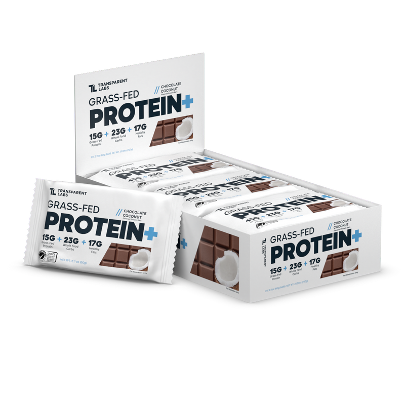 Transparent Labs Grass-Fed Protein+ Bars are designed with whole-food-based ingredients for convenient, high-quality nutrition on the go.