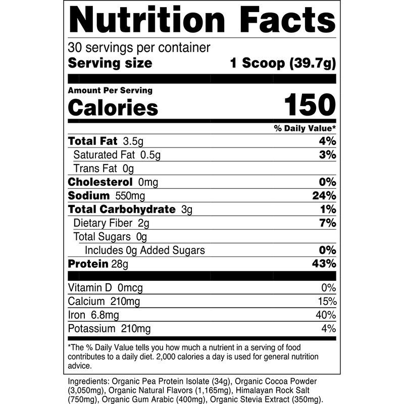 Our pea protein isolate is derived from organic yellow peas and provides 28 grams of high-quality vegan protein per serving to support muscle growth and recovery.