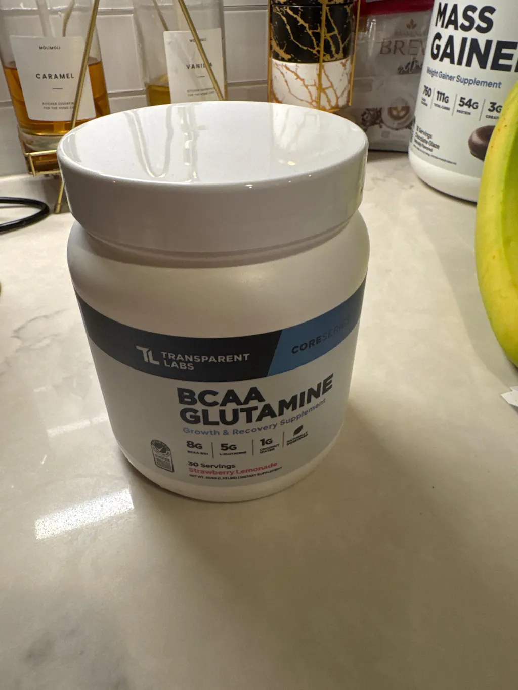 Transparent Labs BCAA Glutamine is the all-natural solution for active individuals and athletes looking to accelerate muscle recovery, reduce muscle fatigue, and support muscle protein synthesis—all while staying hydrated during workouts. Each serving of this deliciously refreshing formula provides 8,000 mg of fermented, vegan-friendly branched-chain amino acids (BCAAs) in the evidence-based 2:1:1 ratio, plus 5,000 mg of L-glutamine, 1,500 mg of vitamin C, and 1,000 mg of coconut water powder.