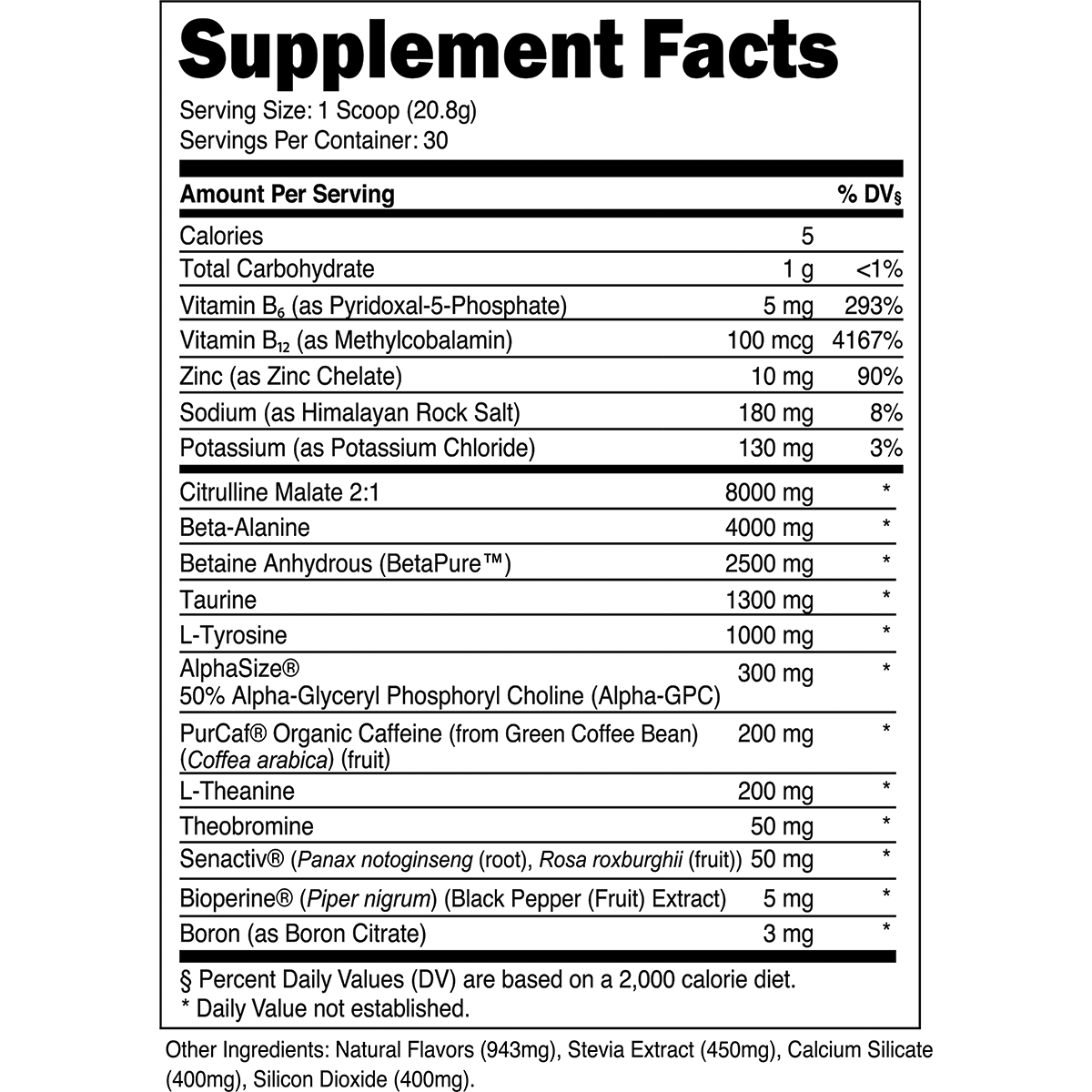 While most pre-workouts contain synthetic caffeine anhydrous, we utilize organic caffeine derived from green coffee beans (as PurCaf®).