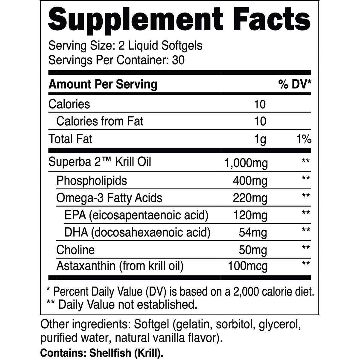 Sourced from the Antarctic Krill species (Euphausia superba), Superba™ Krill Oil contains EPA and DHA in highly absorbable phospholipid forms, along with choline and astaxanthin.