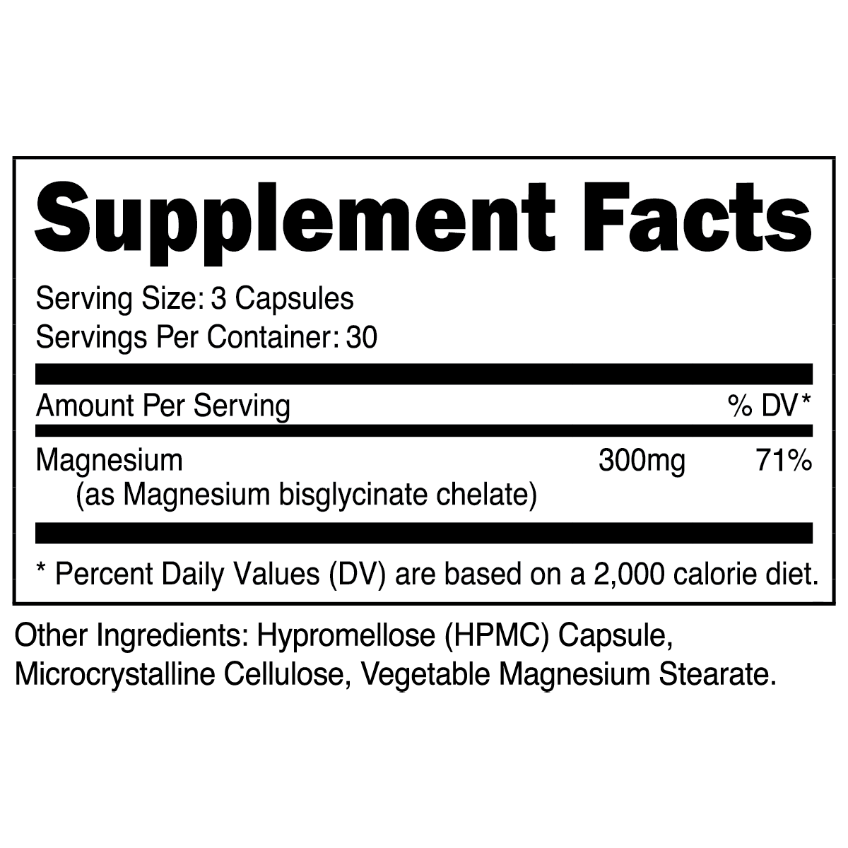 Transparent Labs Magnesium Bisglycinate capsules provide 300 mg of highly bioavailable magnesium (as chelated magnesium bisglycinate) per serving to fill dietary magnesium gaps and support overall intake.
